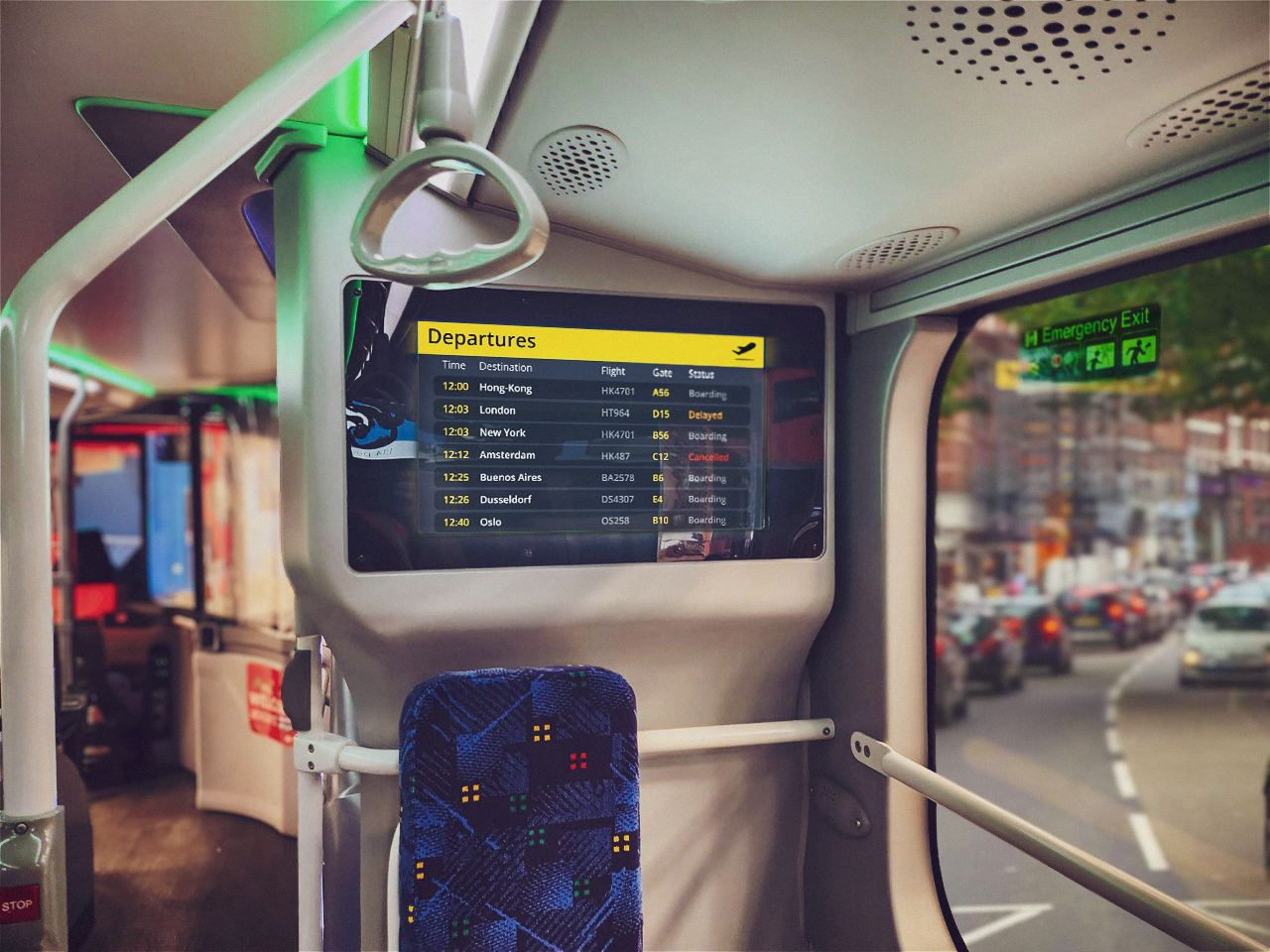 Navaho develops its own software and designs bespoke screen housings to integrate seamlessly with each vehicle. Internal and external displays are engineered to complement vehicle design, while power systems are built for reliability, delivering over 100,000 power-on hours.
